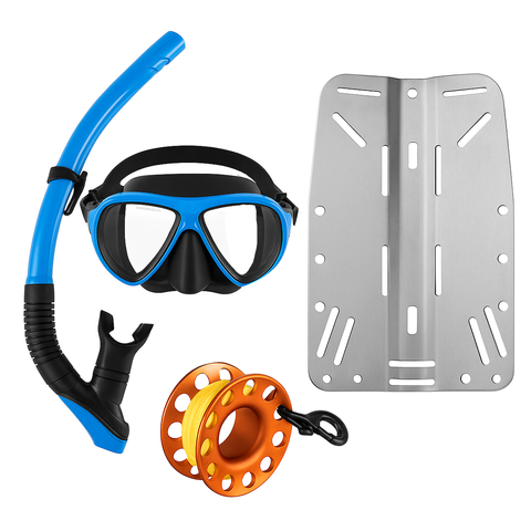 Conjunto de esnórquel técnico con placa trasera y carrete de buceo Paquete combinado OEM Material de fibra de carbono y plástico para buceo
